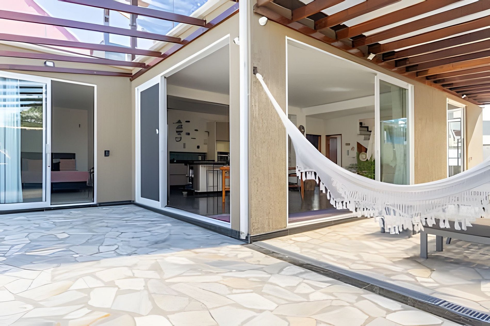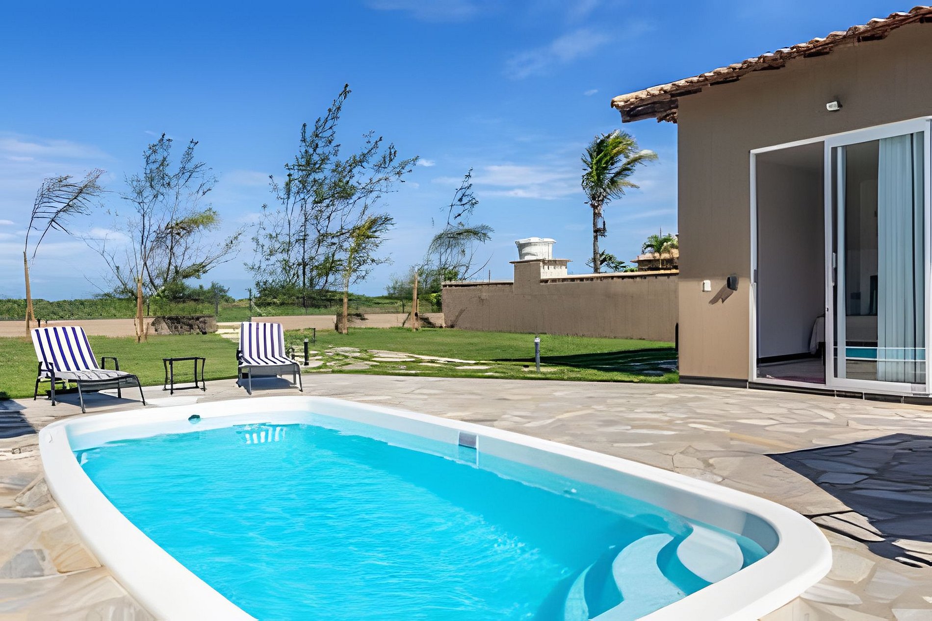 Beautiful house in a modern beach-house style with direct beach access and a pool. Enjoy the serene Tucuns Beach in this stunning house, just a few minutes' drive from the city center of Armação dos Búzios. The house features 3 bedrooms, each with its own bathroom, offering the highest comfort and privacy. Relax by the private pool or take a refreshing swim in the sea right at your doorstep. A beach bar serving delicious cocktails is only 100 meters away. Modern Beach House with comfortable amenities and direct access to Tucuns Beach Experience the perfect combination of comfort and nature in our beautiful house at Tucuns Beach. The entire lower area of the house is available for rent, including: • 3 bedrooms, each with a queen-size bed, ensuite bathroom with shower and toilet, and air conditioning • An additional guest toilet in the living area • A cozy living area with a TV and dining table • A fully equipped kitchen inviting you to cook • A practical laundry room • An optional extra bed for children (on request) • A safe and very quiet beachfront location in the Tucuns district (about a 15-minute drive to the city center of Buzios) • The outdoor area includes a large garden (fenced), a swimming pool, a barbecue, sun beds, and a chill area with a sofa and table • Parking is available on the property or in front of the house Please note that the house is not suitable for small children (without supervision) due to pool access and a steep staircase. The entire lower floor of the house, including all areas, is for rent. The room on the upper floor is closed. The ground floor includes: • 3 guest rooms • 4 bathrooms • Kitchen • Living room • Laundry room • Parking • Pool & garden and barbecue All areas are fully equipped. You can contact me at any time on the platform. If it is urgent, please contact the caretaker. The phone number can be found in the house rules.