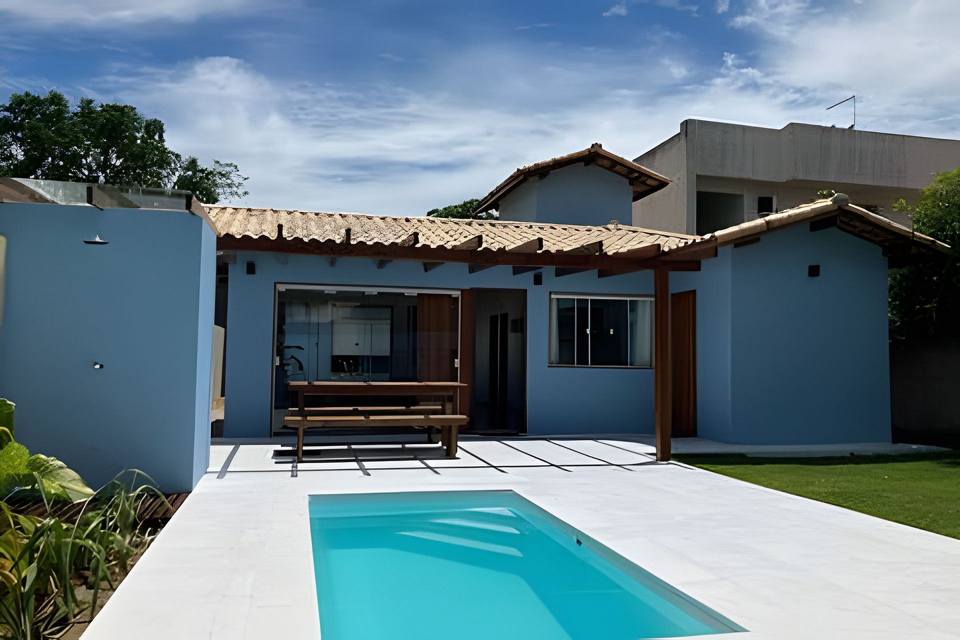 Relaxe com a família nesta casa recém construída, totalmente equipada e pensada para seu conforto em bairro tranquilo e seguro próximo às praias de Tucuns e Geribá. [Clique em “Mostrar mais” para ver todos os detalhes] A casa foi feita pensando em você! Veja o que encontrará nos espaços: - Sala com TV smart 50”, sofá, ventilador de teto e ampla porta-janela integrando ao espaço da churrasqueira e piscina - Área de jantar com mesa e bancos - Cozinha americana completíssima com forno a gás , cook-top de 5 bocas, liquidificador, air fryer, sanduicheira, microondas, louças, panelas e talheres - Quarto 1 (Suíte) com cama de casal, ar condicionado, armário com cabideiro - Quarto 2 (Suíte) com cama de casal, ar condicionado, armário com cabideiro - Quarto 3 com 2 camas de solteiro, ar condicionado, armário com cabideiro - Banheiro social completo - Área externa com churrasqueira, área de jantar externa com mesa e bancos, lavabo e piscina de 2m x 4m (1,40m de profundidade) - Área de serviço com máquina de lavar de 11 kg e tanque Mais informações: - Sim, oferecemos roup de cama e banho sem custo adicional - É possível estacionar de 2 a 3 carros dentro da casa, que conta com portão eletrônico - O check in e check out serão feitos por uma pessoa da nossa equipe. Os horários de check in e check out podem ser flexibilizados dentro de margens razoáveis, nos avise com antecedência para verificar disponibilidade e eventual custo .